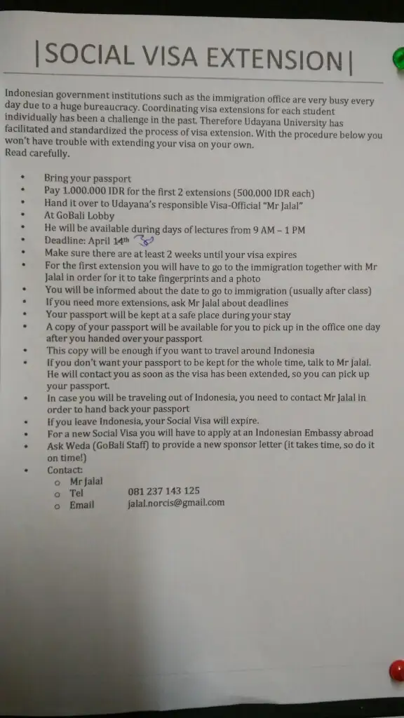 Da die Vorlesungszeit in Bali über drei Monate beträgt, wird ein Studium mit Touristenvisum nicht nur stressig sondern auch noch teuer. Der beste Weg ist es also das Studentenvisum zu beantragen und du hast kaum noch Rennereien damit.